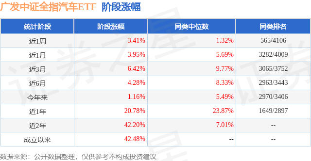 从业绩表现来看,广发中证全指汽车ETF基金过去一年净值涨幅为19.36%,在同类基金中排名662/2216,同类基金过去一年净值涨幅中位数为11.09%。而基金过去一年的最大回撤为-14.39%,成立以来的最大回撤为-26.37%。